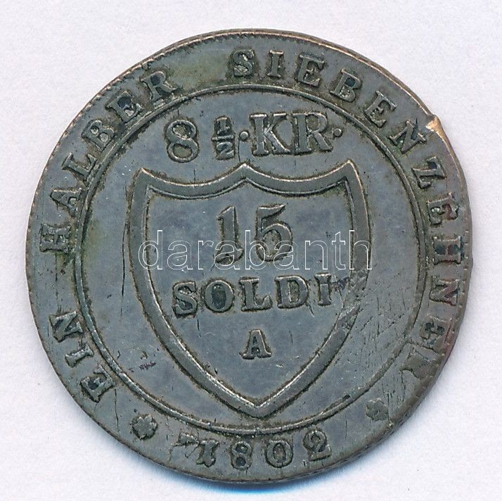 Italian ... https://www.darabanth.com/hu/414-Gyorsarveres/414.0/Numizmatika/Kulfoldi-fem-es-ezustpenzek~2000013/Olasz-Allamok-Gorizia-1802A-15s-8-12kr-Ag-T2-3-patina-Italian-States-Gorizia-1802A-15-Sol~II2595152