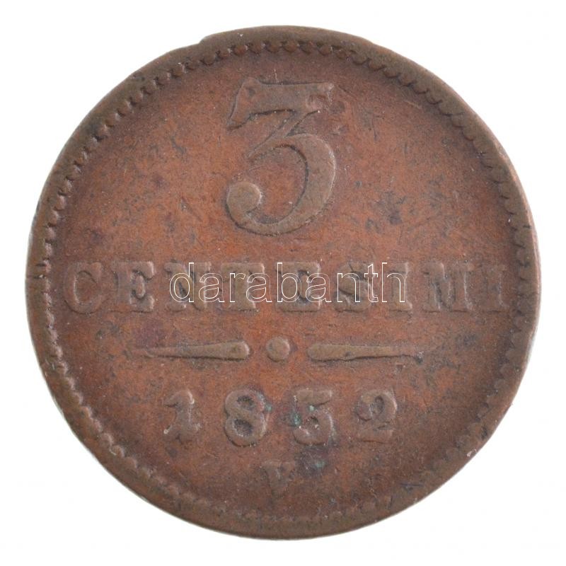 Italian States / Lombardy-Venetia 1852V 3 Centesimi Cu C:VF patina, edge error