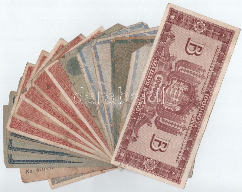 Leírás: 16db-os vegyes korona, pengő, adópengő bankjegy tétel T:II-III-