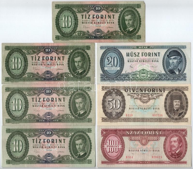 Leírás: 1969. 10Ft (4x) + 1980. 20Ft + 1989. 50Ft + 1992. 100Ft T:II-III