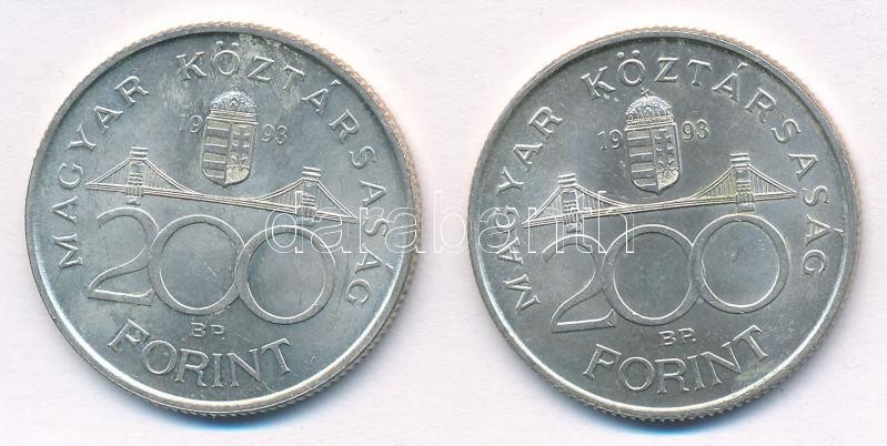 Leírás: 1993. 200Ft Ag "MNB" (2x) T:1-,2