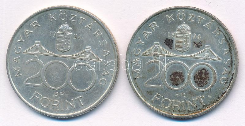 Leírás: 1994. 200Ft Ag "Deák" (2x) T:1-,2 patina