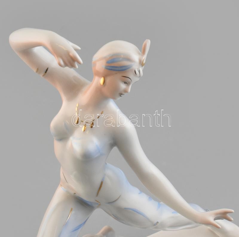 Leírás: Hollóházi porcelán ,,Seherezádé", kézzel festett, jelzett, kopott, karján apró vaspötty, m: 25 cm