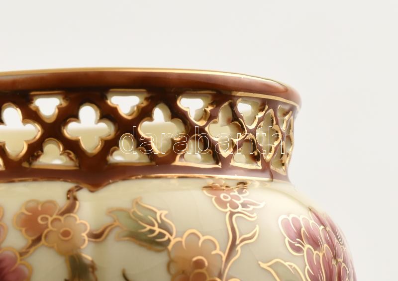 Leírás: Zsolnay kaspó virágmintás kézzel festett jelzett hibátlan d: 10 cm, m: 10 cm