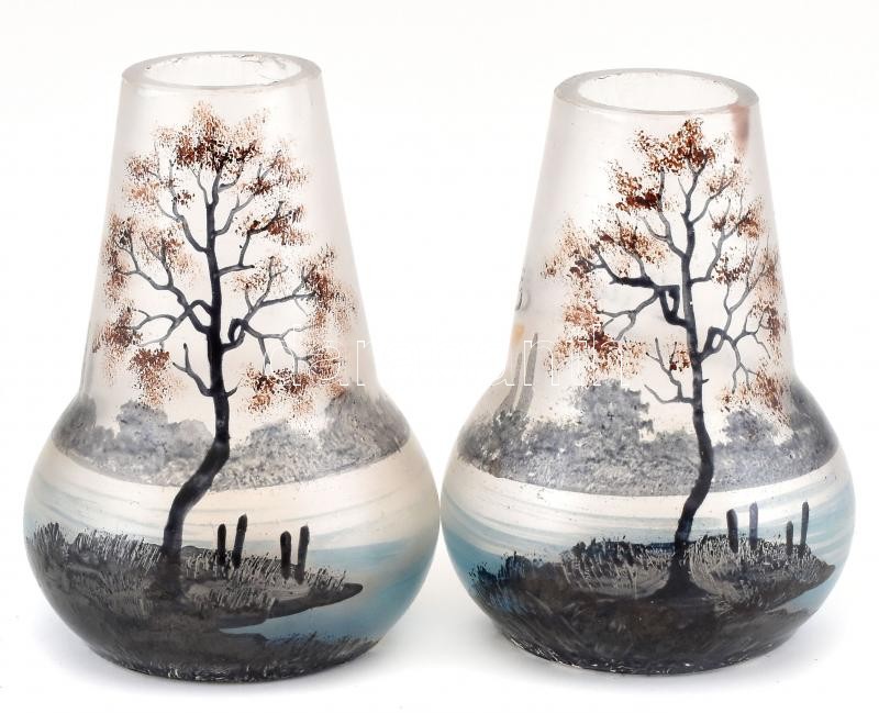 Balatonlelle vázapár, kézzel festett üveg, 1920 körül. apró lepattanás... https://www.darabanth.com/hu/414-Gyorsarveres/414.0/Porcelan-keramia-uveg/Uvegtargyak~500007/Balatonlelle-vazapar-kezzel-festett-uveg-1920-korul-apro-lepattanasokkal-kopott-m8-5cm~II2587663