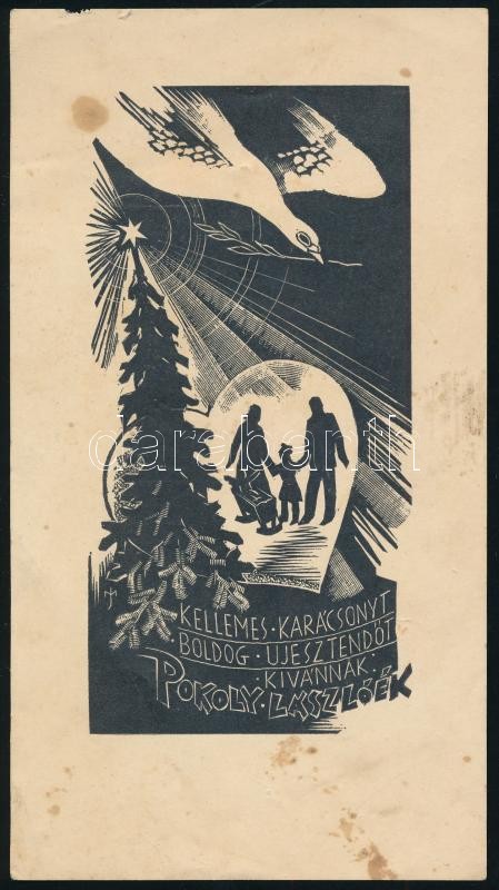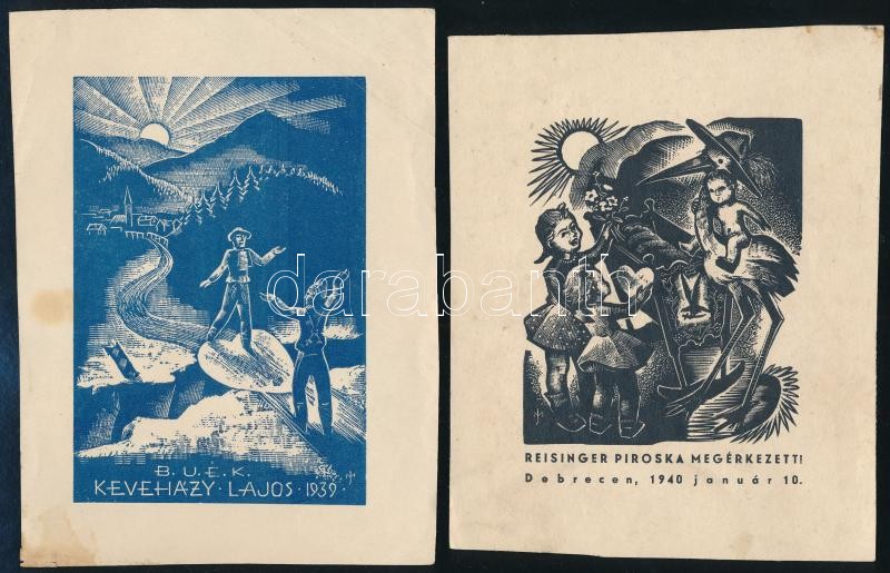 cca 1939-1940 Menyhárt József (1901-1976): 3 db alkalmi kisgrafika (karácsony, újév, gyermek születése), foltos állapotban, 13x11 cm és 18,5x10 cm között