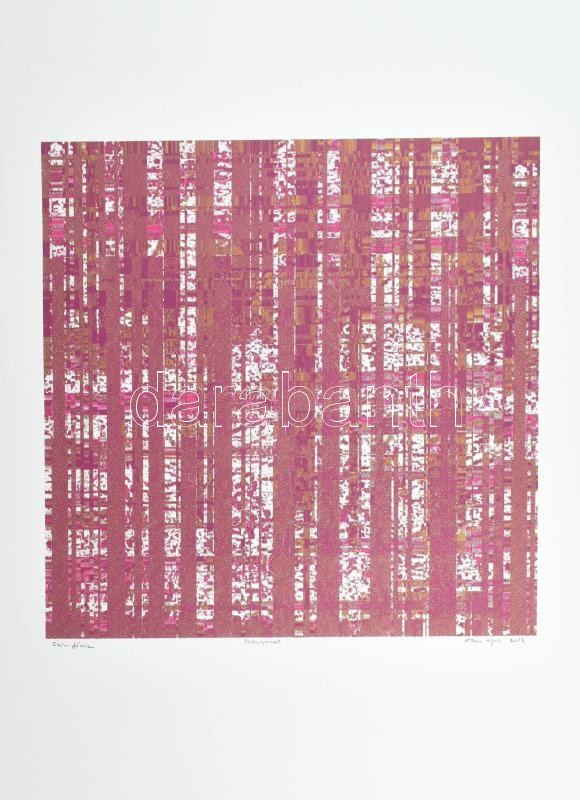 Leírás: Haász Ágnes (1951-): Szín-fónia, 2013. Szitanyomat, papír. Jelzett. Hátoldalán autográf felirattal. 40x40 cm.
