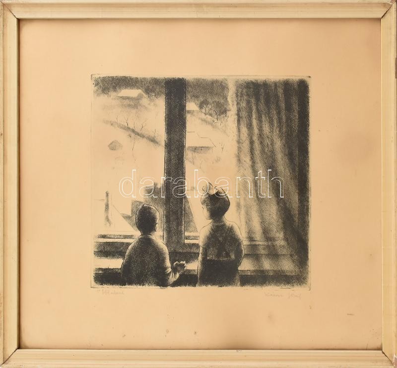 Kórusz József (1927-2010): Ablaknál. Rézkarc, papír, jelzett. Üvegezet... https://www.darabanth.com/hu/415-Gyorsarveres/415.0/Festmenyek-es-grafikak/Festmenyek-es-grafikak~500001/Korusz-Jozsef-1927-2010-Ablaknal-Rezkarc-papir-jelzett-Uvegezett-serult-fakeretben-~II2599317