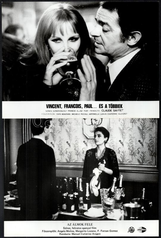 Ne csak együnk, igyunk is! külföldi filmek egy-egy jelenete és szereplői (köztük Yves Montand), 13 db vintage produkciós filmfotó, ezüstzselatinos fotópapíron, 18x24 cm