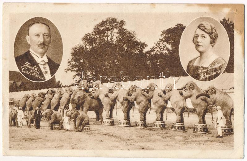 Leírás: "Krone" Der größte Circus Europas. Direktor Carl Krone, Frau Direktor Ida Krone / The Biggest Circus in Europe, directors, elephants (b)