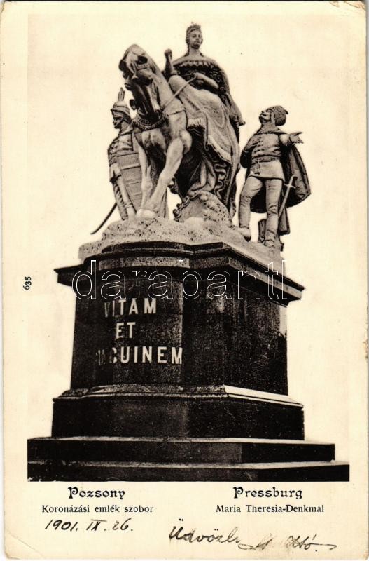 1901 Pozsony, Pressburg, Bratislava; Koronázási emlék szobor (Mária Te... https://www.darabanth.com/hu/415-Gyorsarveres/415.0/Kepeslapok/Felvidek~1000007/1901-Pozsony-Pressburg-Bratislava-Koronazasi-emlek-szobor-Maria-Terezia-emlekmu-Maria-~II2605441