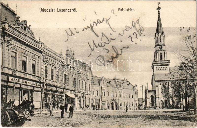 1906 Losonc, Lucenec; Kubinyi tér, Jamrich Gusztáv, Ifj. Steiner Józse... https://www.darabanth.com/hu/415-Gyorsarveres/415.0/Kepeslapok/Felvidek~1000007/1906-Losonc-Lucenec-Kubinyi-ter-Jamrich-Gusztav-Ifj-Steiner-Jozsef-Halmos-Hugo-uzlete-s~II2602844