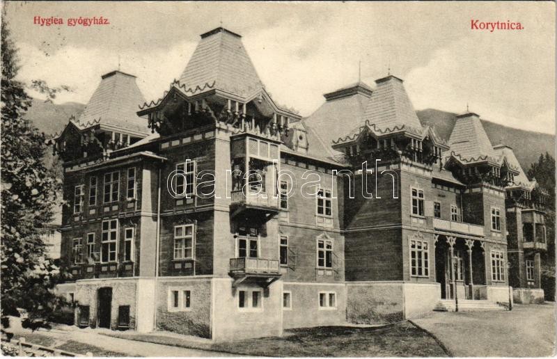 Leírás: 1910 Koritnyica, Korytnica; Hygiea gyógyház, fürdő szálloda. Komor Testvérek kiadása / villa, hotel, spa (EK)