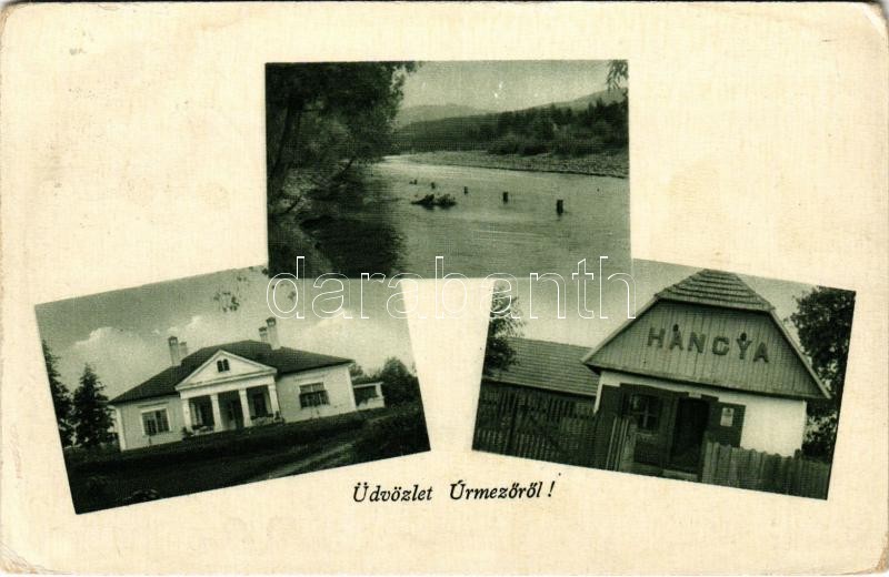 Leírás: 1944 Úrmező, Vermeziv, Polien Riskeve, Ruske Pole; Hangya szövetkezet üzlete, Talabor folyó / cooperative shop, villa, Tereblia river (kopott sarkak / worn corners)