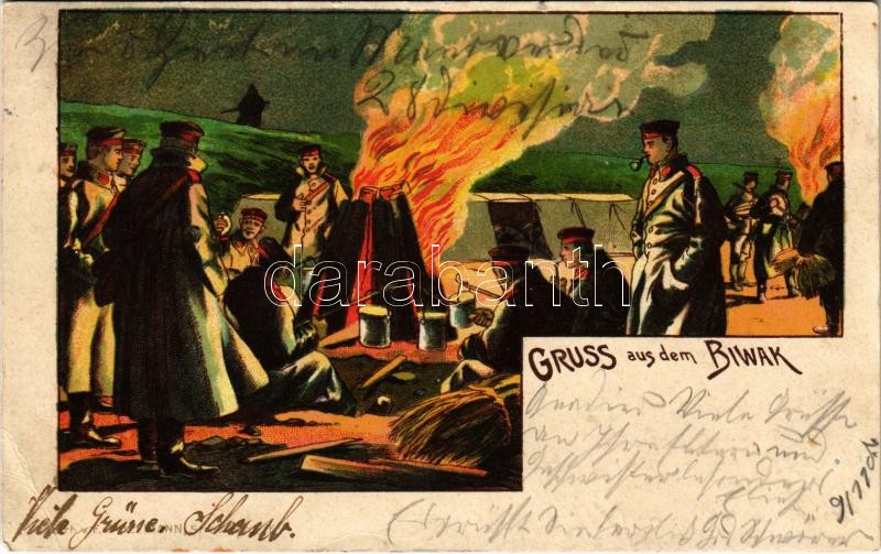 1908 Gruss aus dem Biwak / German military art postcard, soldiers arou... https://www.darabanth.com/hu/415-Gyorsarveres/415.0/Kepeslapok/Katonai~1000067/1908-Gruss-aus-dem-Biwak-German-military-art-postcard-soldiers-around-the-campfire-litho-EB~II2599106