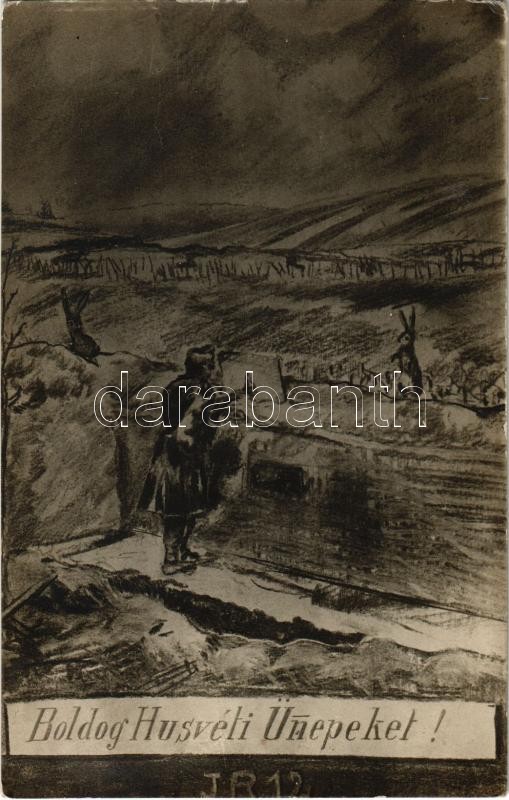 1917 Boldog húsvéti ünnepeket! I.R. 12. / WWI Austro-Hungarian K.u.K. military art postcard with Easter greeting from the 12th Infantry Regiment. photo