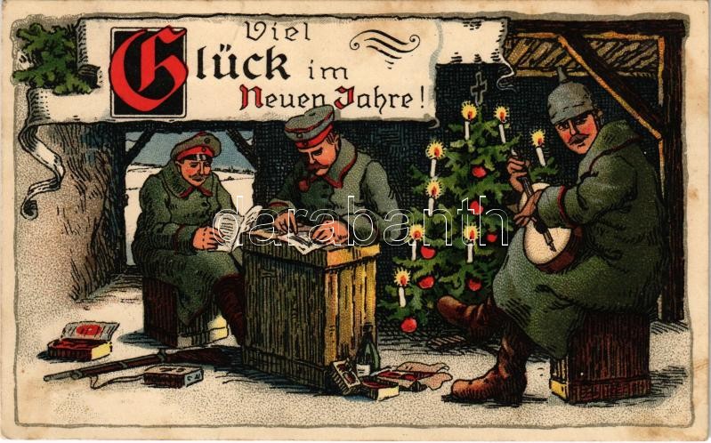 Viel Glück im Neuen Jahre! / WWI German military art postcard with New... https://www.darabanth.com/hu/415-Gyorsarveres/415.0/Kepeslapok/Katonai~1000067/Viel-Gluck-im-Neuen-Jahre-WWI-German-military-art-postcard-with-New-Year-greeting-litho-fl~II2599104