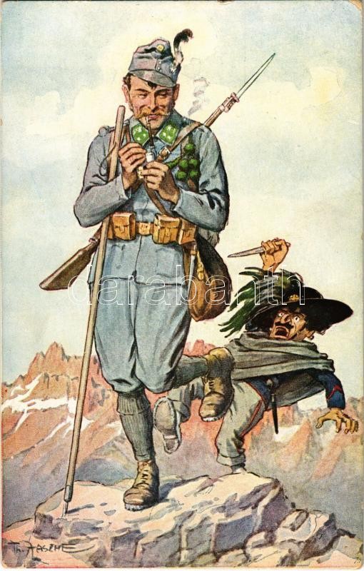 WWI Austro-Hungarian K.u.K. military art postcard, mountain infantry. ... https://www.darabanth.com/hu/415-Gyorsarveres/415.0/Kepeslapok/Katonai~1000067/WWI-Austro-Hungarian-KuK-military-art-postcard-mountain-infantry-M-Munk-Wien-Nr-1026-s-Th-~II2599009