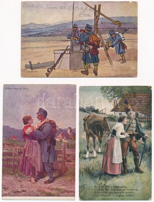 Leírás: 3 db régi magyar katonai művész motívum képeslap / 3 pre-1945 Hungarian military art motive postcards