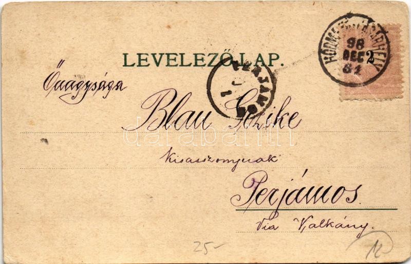 1898 (Vorläufer) Hódmezővásárhely, Városház és Kossuth tér, Református főgimnázium és templom, Andrássy utca, Központi szálloda és János tér. Grossmann Benő kiadása. Art Nouveau, floral (EM)
