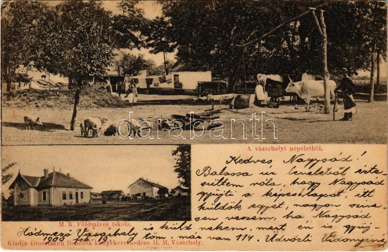 Leírás: 1900 Hódmezővásárhely, M. kir. földműves iskola, a vásárhelyi népéletből. Grossmann Benedek kiadása (EB)