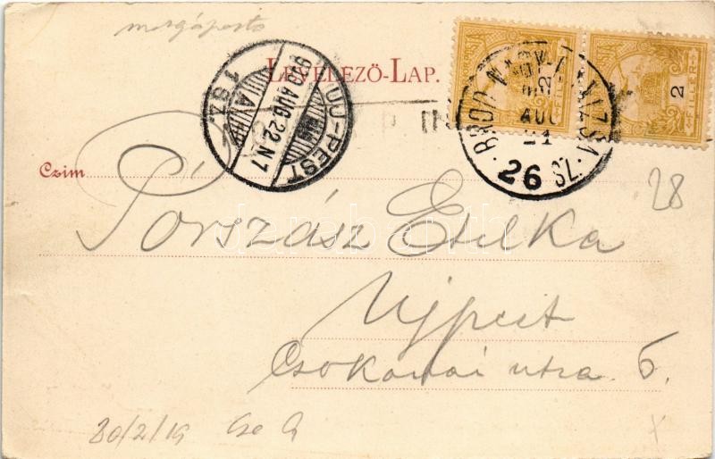 Leírás: 1900 Mohács, Dunapart + "BROD-NAGY-KANIZSA 26.SZ." vasúti mozgóposta