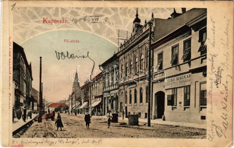 1906 Kaposvár, Fő utca, Takarékpénztár, Első Magyar Biztosító Társaság... https://www.darabanth.com/hu/415-Gyorsarveres/415.0/Kepeslapok/Magyarorszag~1000005/1906-Kaposvar-Fo-utca-Takarekpenztar-Elso-Magyar-Biztosito-Tarsasag-fougynoksege-S~II2601506