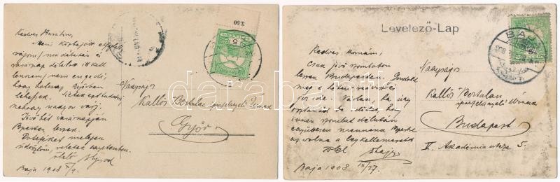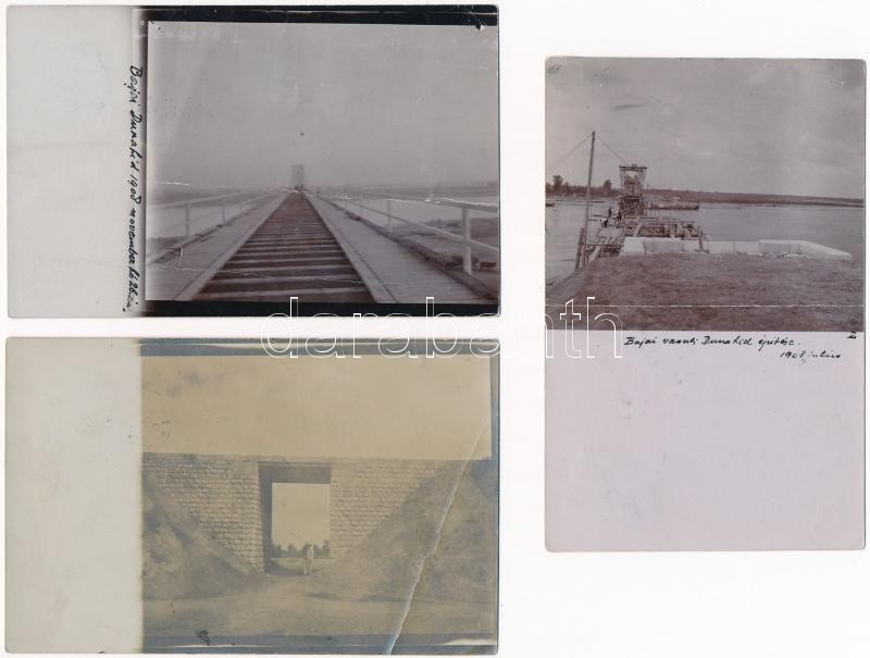 1908-1909 Baja, Dunai vasúti híd építése - 5 db eredeti fotó, kettő Kallós Bertalan iparfelügyelőnek (későbbi államtitkár) címezve / 5 original photos, Danube railway bridge