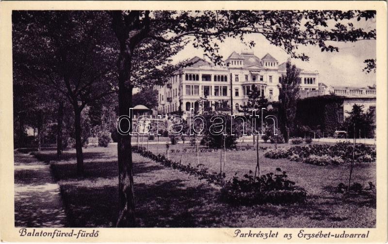Balatonfüred, Erzsébet udvar, park https://www.darabanth.com/hu/415-Gyorsarveres/415.0/Kepeslapok/Magyarorszag~1000005/Balatonfured-Erzsebet-udvar-park~II2600790