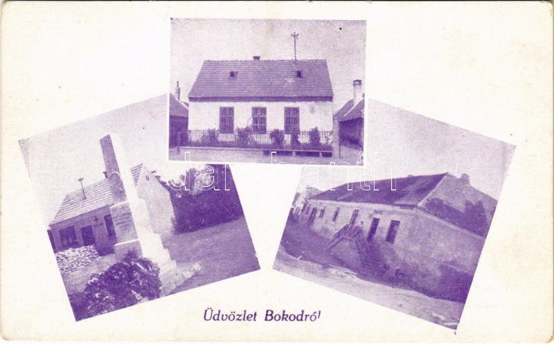 Leírás: Bokod, emlékmű, utca, üzlet. Hangya szövetkezet kiadása (EK)