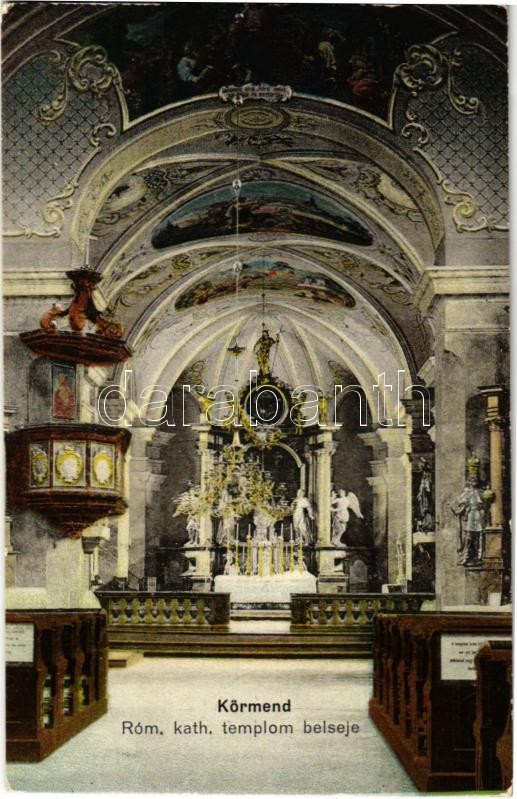 Körmend, Római katolikus templom belseje. Vasúti levelezőlapárusítás 1... https://www.darabanth.com/hu/415-Gyorsarveres/415.0/Kepeslapok/Magyarorszag~1000005/Kormend-Romai-katolikus-templom-belseje-Vasuti-levelezolaparusitas-133~II2601491