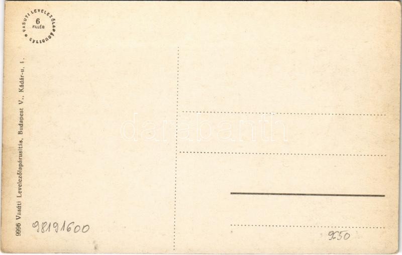 Leírás: Vámosgyörk, vasútállomás, vonat, gőzmozdony, artézi kút. Vasúti levelezőlapárusítás 9996. (EK)