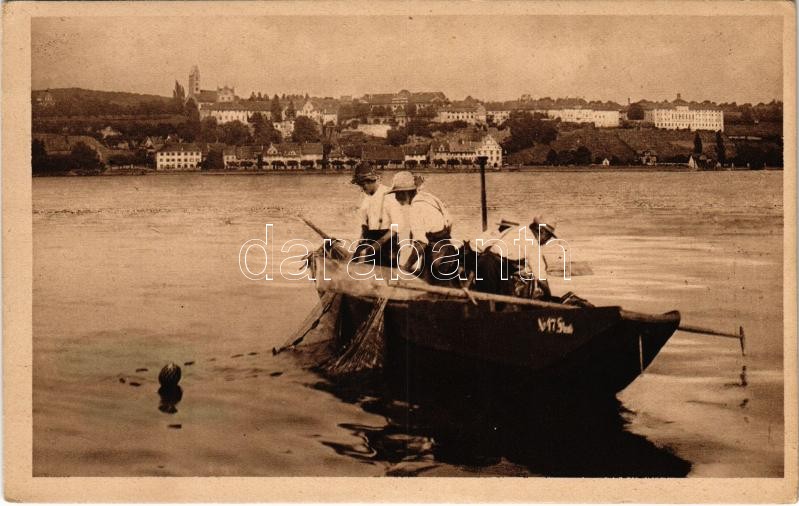 Meersburg am Bodensee, Felchenfänger bei der Arbeit / Whitefish catche... https://www.darabanth.com/hu/415-Gyorsarveres/415.0/Kepeslapok/Nemetorszag~1000036/Meersburg-am-Bodensee-Felchenfanger-bei-der-Arbeit-Whitefish-catchers-at-work-fishing-EK~II2605417