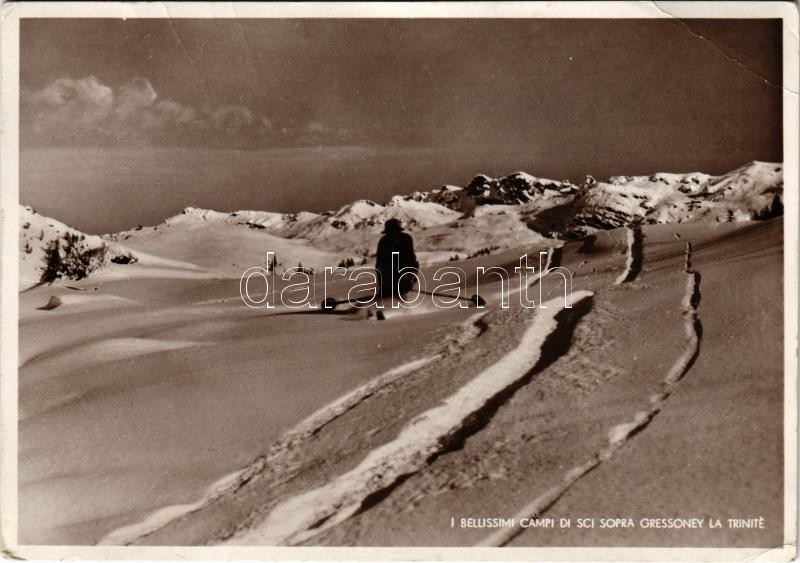 Leírás: 1937 Gressoney-La-Trinité (Aosta), Grand Hotel Busca Thedy. I Bellissimi Campi di Sci Sopra / ski field, winter sport (EB)