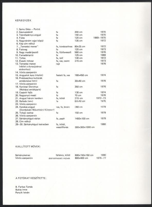 Bukta Imre és Samu Géza kiállítása, Kőbánya Pataky Galéria, 1981. 81 p. Fekete-fehért képekkel és reprodukciókkal gazdagon illusztrált kiállítási katalógus. Kiadói papírkötésben.
