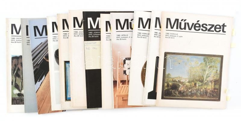1982 A Művészet c. folyóirat teljes évfolyama sok aláírással, a művészek képein: Nádler, Schéner, Gyémánt, Kő Pál, Keserű Ilona, Gorka cikkek aláírások,