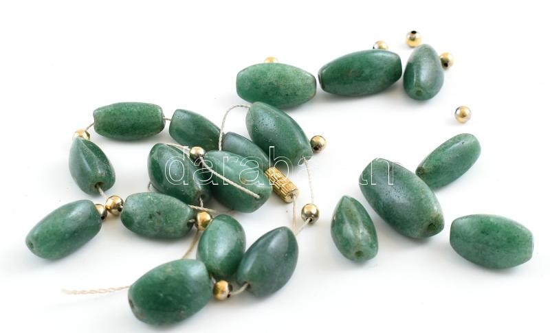 Leírás: Aventurin nyaklánc, szakadt / újrafűzésre szorul, a kövek hiánytalanul megvannak, h: kb. 50 cm