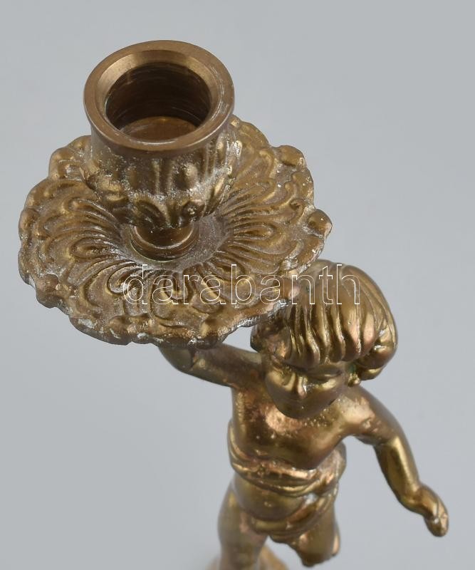 Leírás: Gyertyatartó bronz kisfiú figura. 25 cm