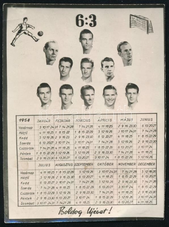 Leírás: 1954 kártyanaptár 6:3 Aranycsapat képével 5,5x7 cm