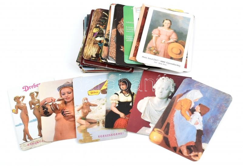 Leírás: 71 db vegyes kártyanaptár, művészeti témájú, Kőbányai Sörgyár, stb., közte néhány erotikus