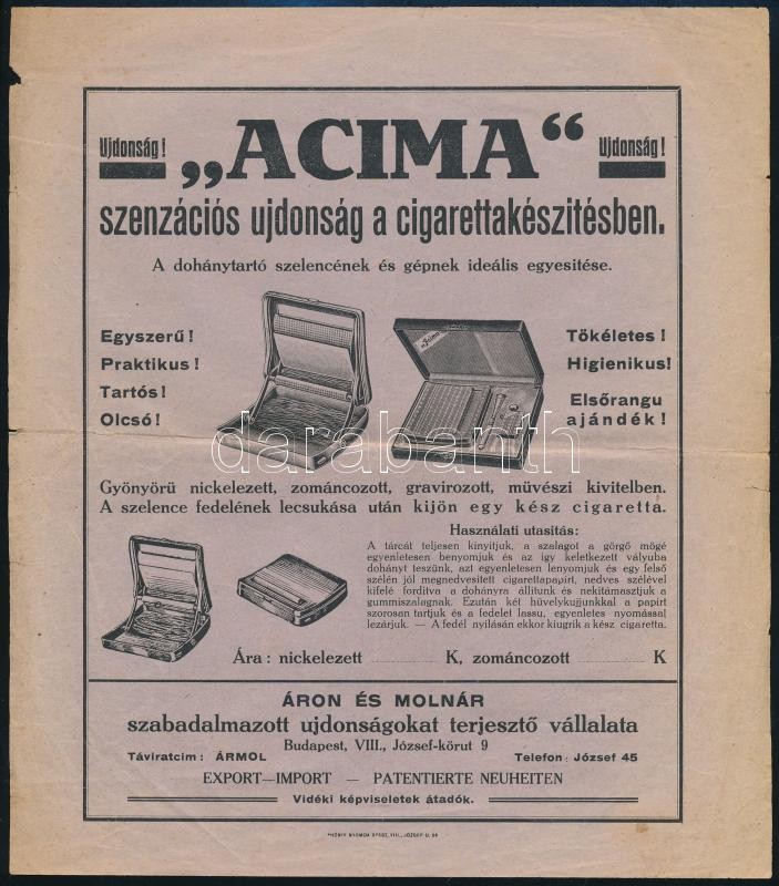 "Acima" dohánytartó szelence és gép reklámlap https://www.darabanth.com/hu/415-Gyorsarveres/415.0/Mutargy-papirregiseg-egyeb/Reklam~500022/Acima-dohanytarto-szelence-es-gep-reklamlap~II2603173