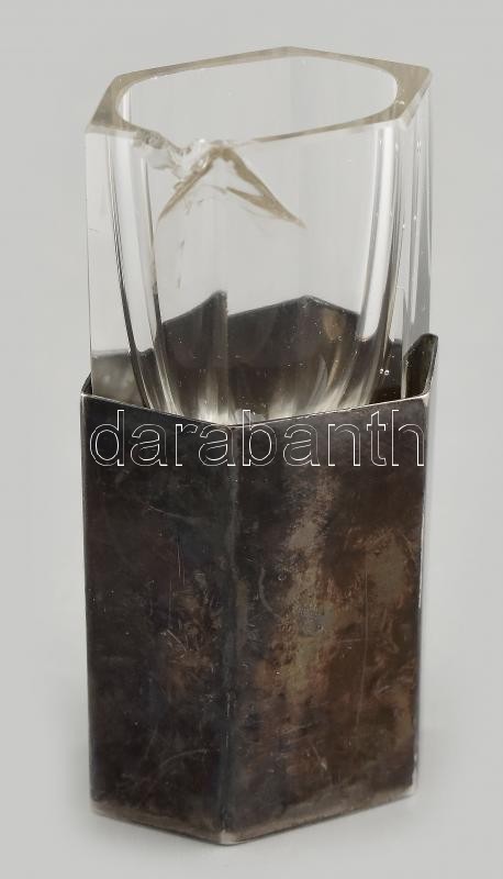 Leírás: Art deco ezüst (Ag) likörös pohár, üveg betéttel. Csorba. Jelzett, nettó 36 g