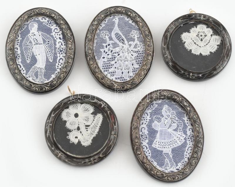 Leírás: Ezüst (Ag) képkeret, ovális és kerek, 5 db, d:4, 5,5x4cm, jelzett, bruttó: 115g