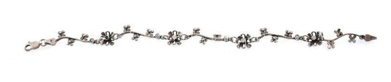 Leírás: Ezüst (Ag) virágos karlánc, kövekkel ékítve, jelzett, h:20cm, bruttó:9,1g