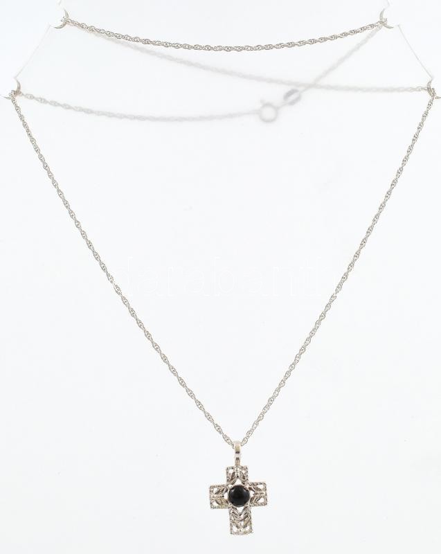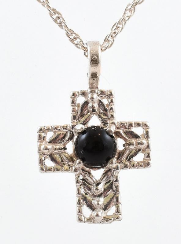 Leírás: Ezüst (Ag)nyaklánc feszülettel kis fekete zománcpöttyös feszülettel bruttó 2,9 g