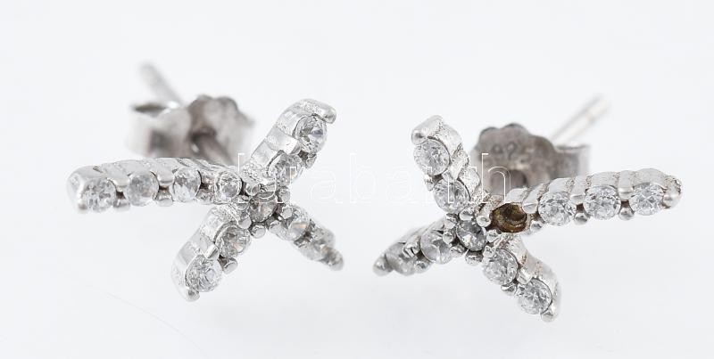 Leírás: Ezüst(Ag) fülbevalópár, kőhiánnyal, jelzett, d: 1,3 cm, bruttó: 0,7 g