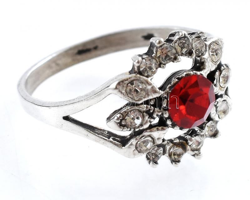 Leírás: Ezüst(Ag) virágos gyűrű piros kővel, jelzett, méret: 60, bruttó: 3,1 g