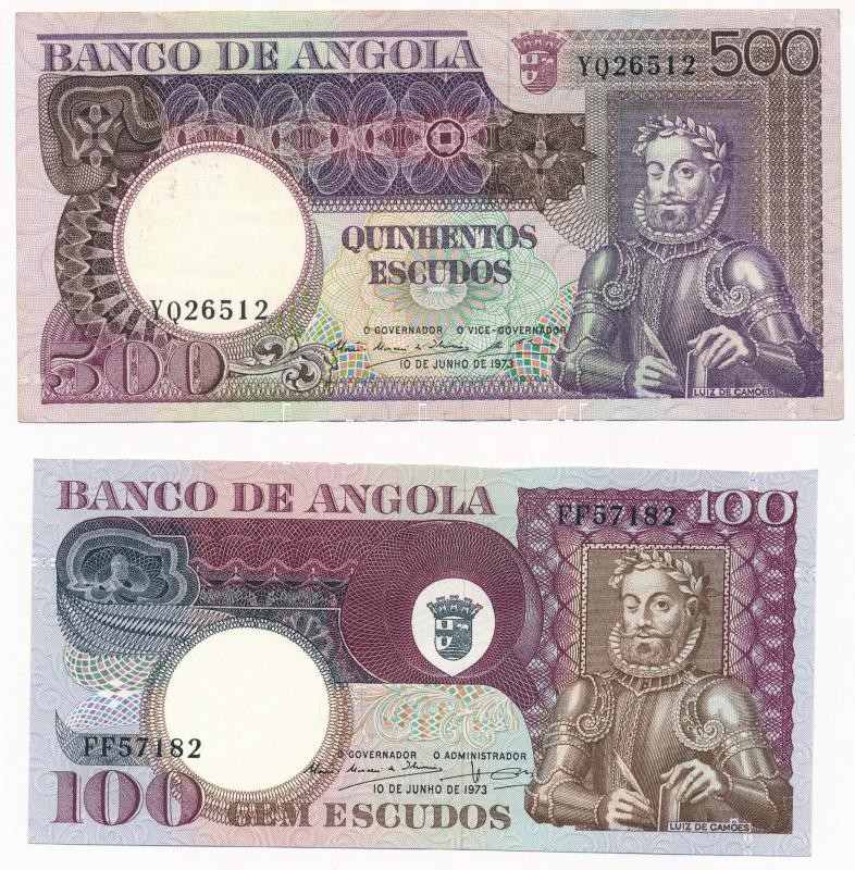 Leírás: Angola 1973. 100-500E (2x) T:II hajtatlan, felső szélén vágott, I-