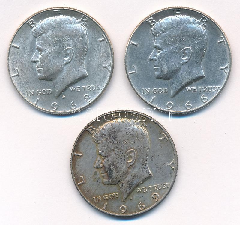 Amerikai Egyesült Államok 1966. 1/2$ Ag "Kennedy" + 1968D 1/2$ Ag "Kennedy" + 1969D 1/2$ Ag "Kennedy" T:1-,2 patina