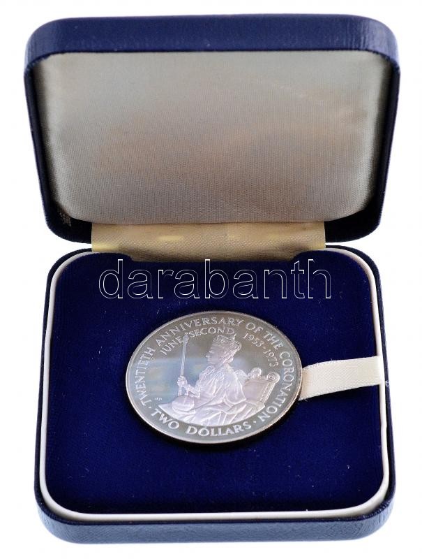 Cook-szigetek 1973. 2$ Ag "II. Erzsébet megkoronázásának 20. évfordulója" emlékérme eredeti díszdobozban T:PP patina